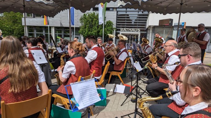 Der erste Unterhaltungsauftritt der Saison fand statt im Rahmen der Maibaumstellung durch den Schwäbischen Albverein und die Feuerwehr. Sowohl unsere Jugend als auch die Aktive Kapelle haben auf dem Rathausvorplatz für gute Unterhaltung gesorgt.